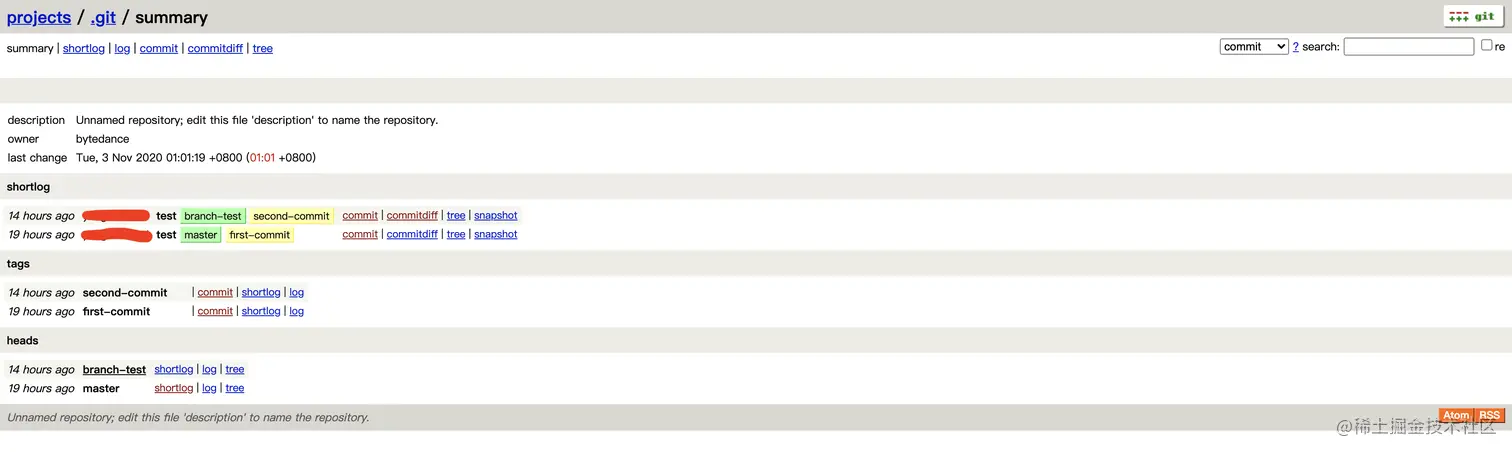 上图中description字段对应的内容就是 .git/description 文件中记录的内容。