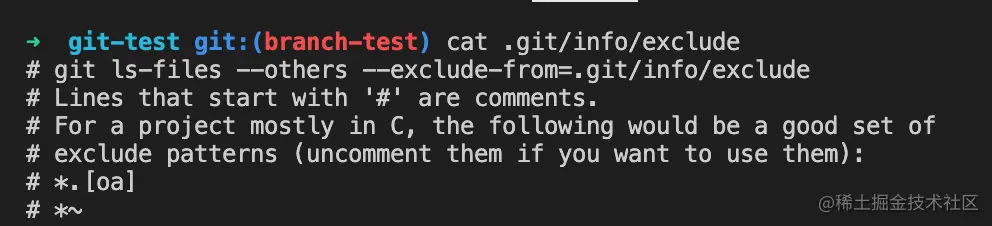 info目录下只有exclude文件,其作用与 .gitignore 功能类似。他们的区别在于 .gitignore 这个文件本身也是存储在对象库中,用来保存的是公共需要排除的文件;而exclude文件中设置的则是本地需要排除的文件,不会影响到其他人。