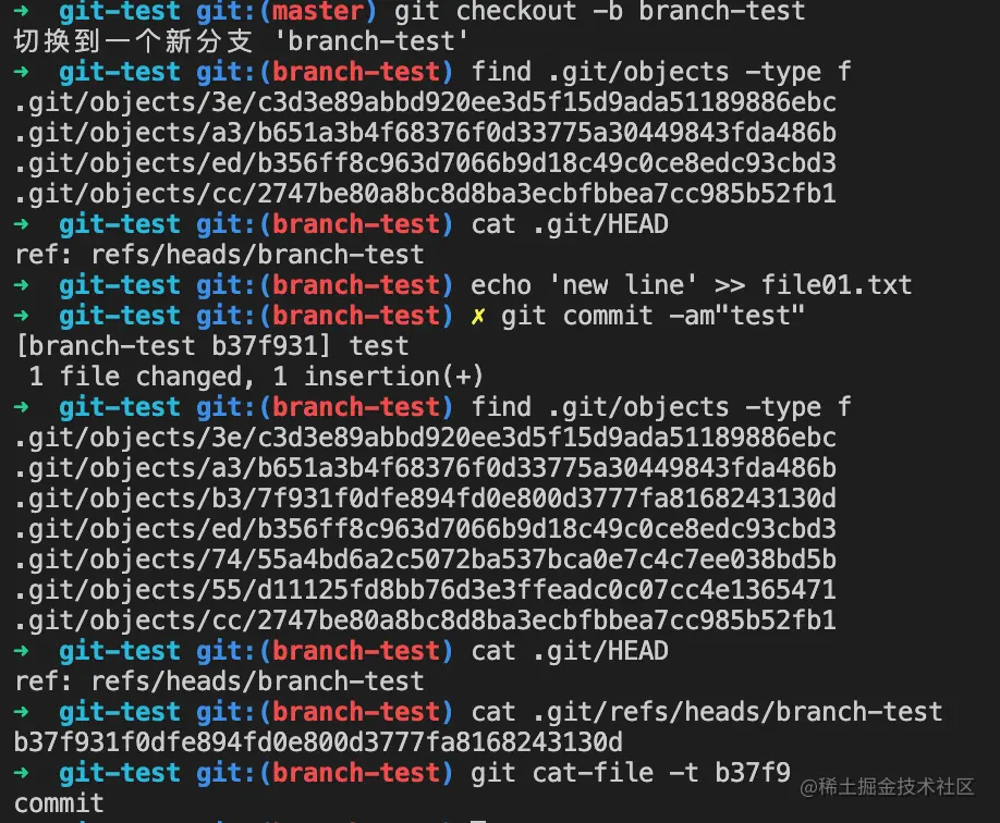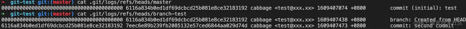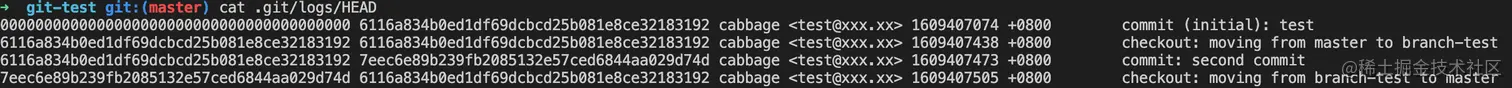refs/heads/branch-name(分支名称)文件记录对应分支上的操作信息: