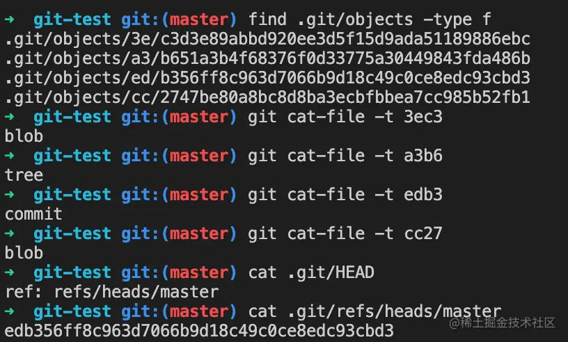 下文将围绕上图中的文件目录展开介绍(由于仓库初始化,index文件,COMMIT_EDITMSG文件以及logs文件夹等没有在上图中显示)。