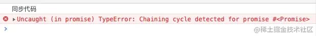 then返回的promise不能是then相同的Promise,也就是不允许返回自己生成的promise对象。执行以下示例代码将产生错误: