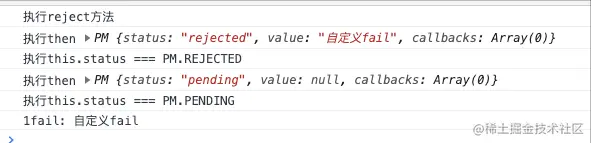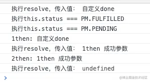 但目前自定义then方法无法处理pending时的状态,不会打印setTimeout里的resolve结果。因为实例化完PM对象之后,立刻就执行了then方法。但是resolve改变状态是在1秒以后。