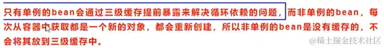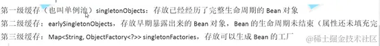 不用一级是因为初始化完成的bean是放在一级缓存中的,半成品bean若放在一级缓存中则进行属性填充时有可能拿到的时半成品。