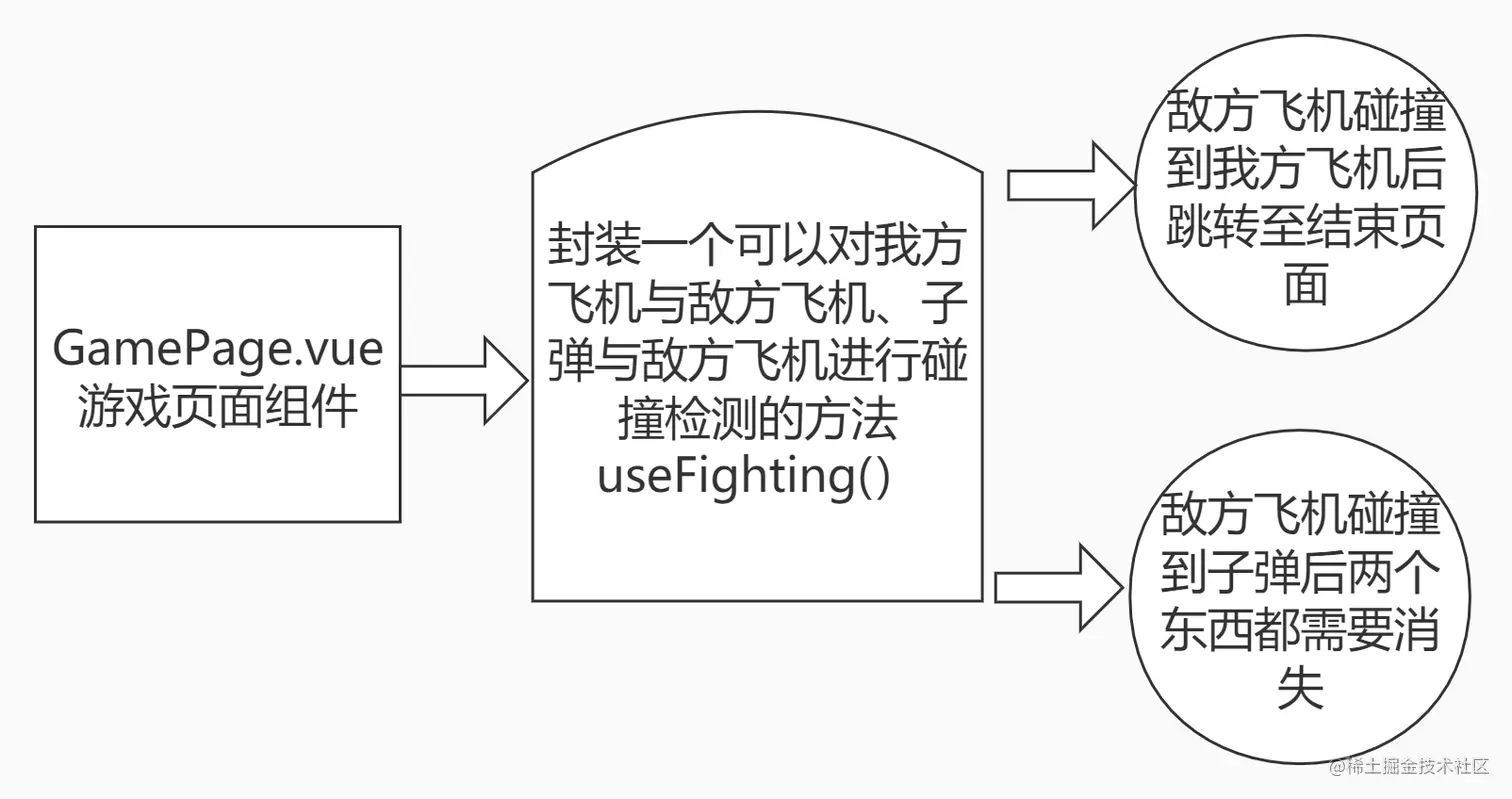 - 如何做到碰撞检测我方飞机与敌方飞机、子弹与敌方飞机逻辑图如下: