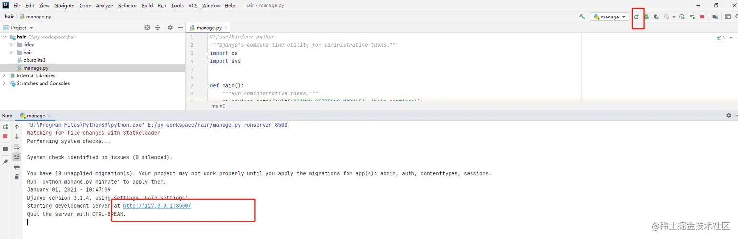 3.运行django项目