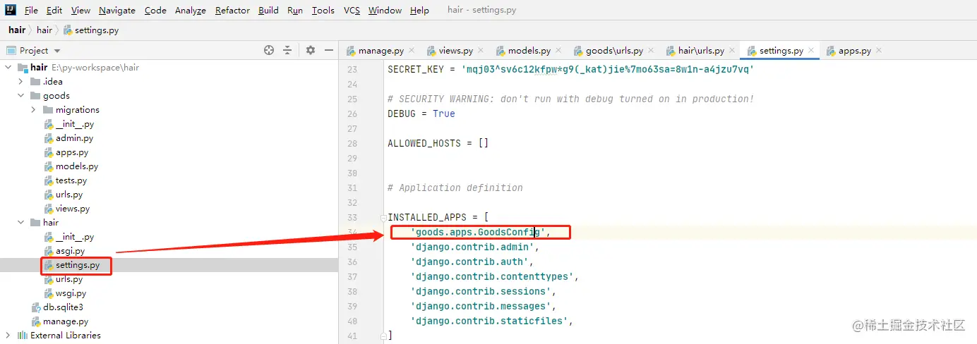 然后在settings.py中进行配置