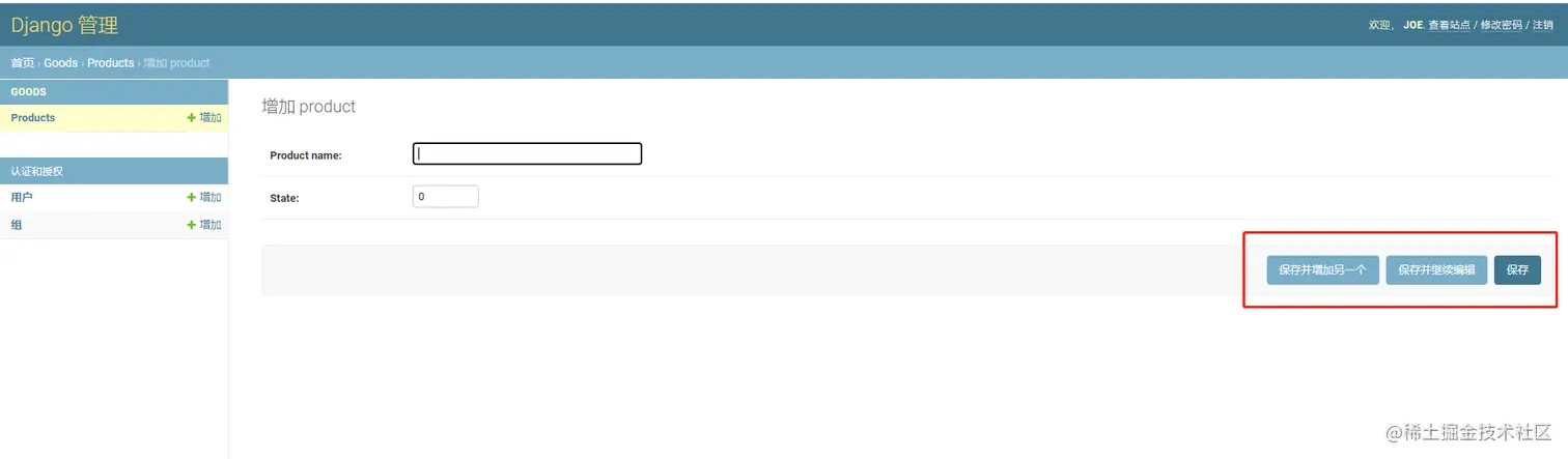 注意:保存页面有3种保存模式,分别是保存、保存并增加另一个、保存并继续编辑
