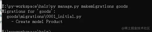 py manage.py makemigrations goods