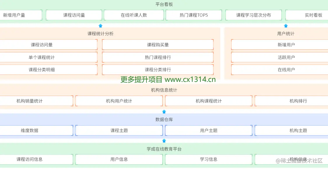 针对在线教育平台业务进行大数据统计分析的系统,对课程、用户、教育机构三个业务领域,进行数据挖掘,从不同维度进行数据分析,为在线教育平台运营提供参考数据依据。
