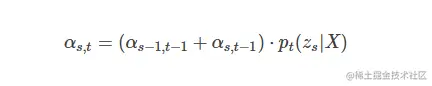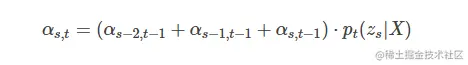 我们在计算t时刻的α的时候有两类情况:一类是对齐的时候可以不能跳过zs−1的;另一类是能跳过zs−1的。