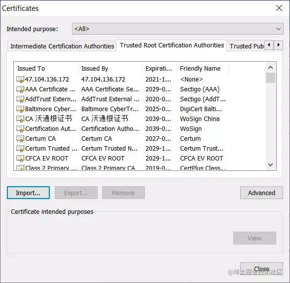 点击“Import",把上面生成的domain.crt导入。