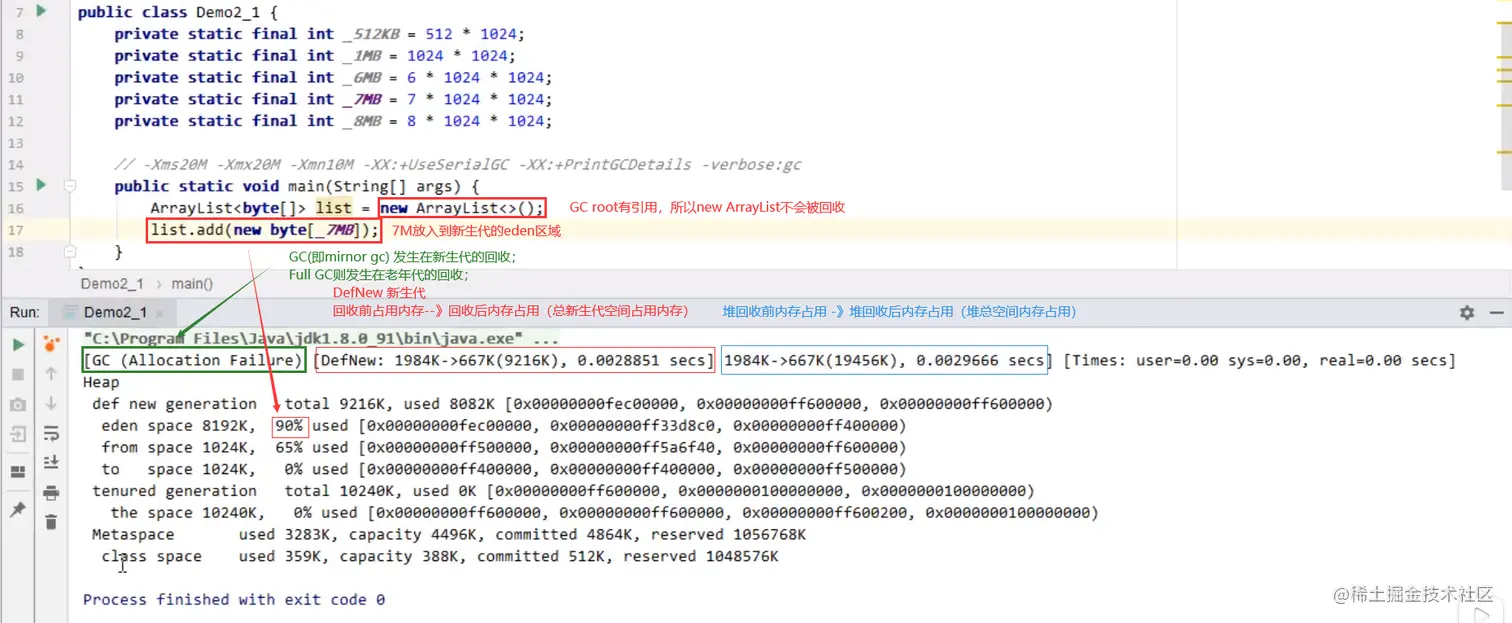 通过new关键字,创建对象都会使用堆内存。所有对象都在这里分配内存,是所有线程共享的,同时也是垃圾回收的主要区域(“GC堆”)。 现代的垃圾收集器基本都是采用分代收集算法,其主要的思想是针对不同类型的对象采取不同的垃圾回收算法。可以将堆分成两块: