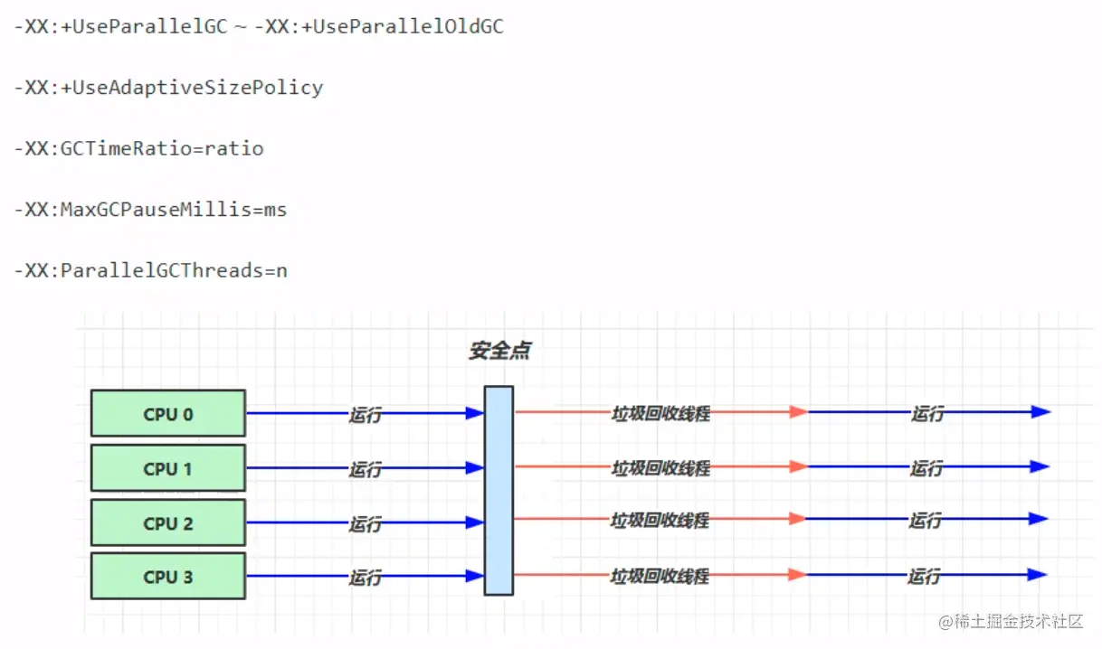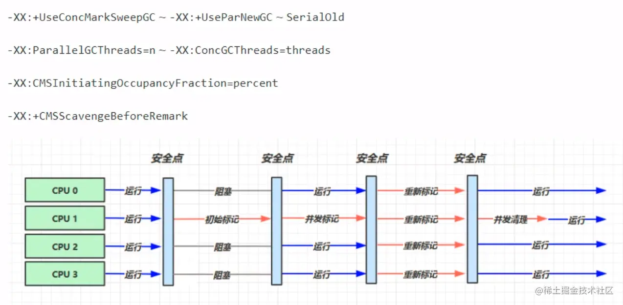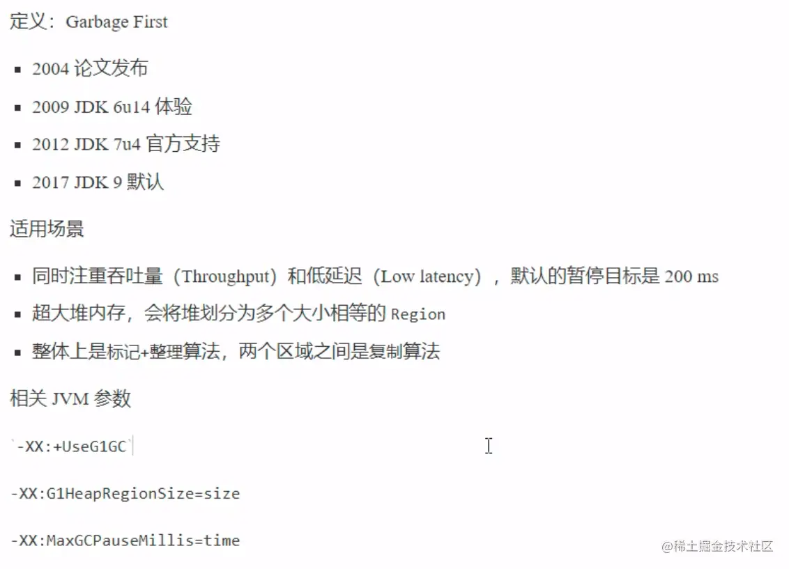 适用场景:堆内存较大,多核CPU;stop the world(STW)会暂停线程,尽可能让单次 STW 的处理时间最短。