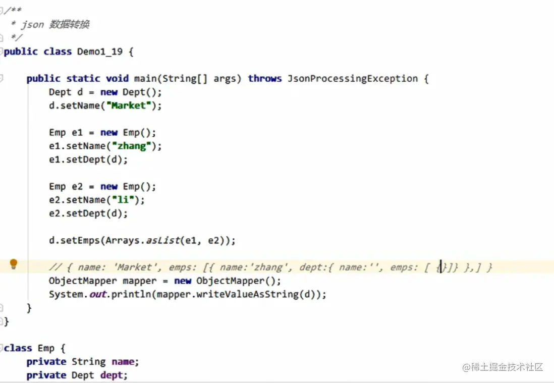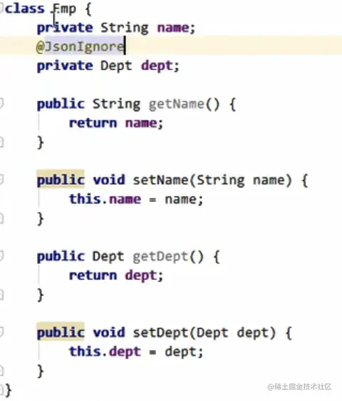 Emp 类引用了 Dept 类,Dept 类也引用了 Emp 类