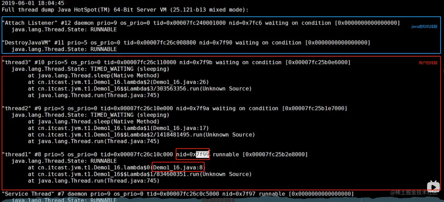 java虚拟机名称时固定的,Thread_xx是用户执行java的线程