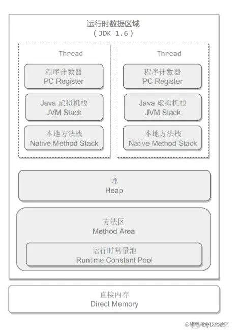 运行时数据区域即 JVM 执行 Java 程序的过程中会把它管理的内存分为若干个不同的数据区域。