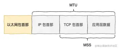 以上是每一层发出的包,每个数据链接层的包(准确地说,链路层的包应该叫帧)规定的 IP 数据报的大小是有限制的,一般把这个大小限制称为最大传输单元(MTU, Maximum Transmission Unit), TCP 数据报的大小也是有限制的,我们称之为 MSS(Maximum Transmission Unit)