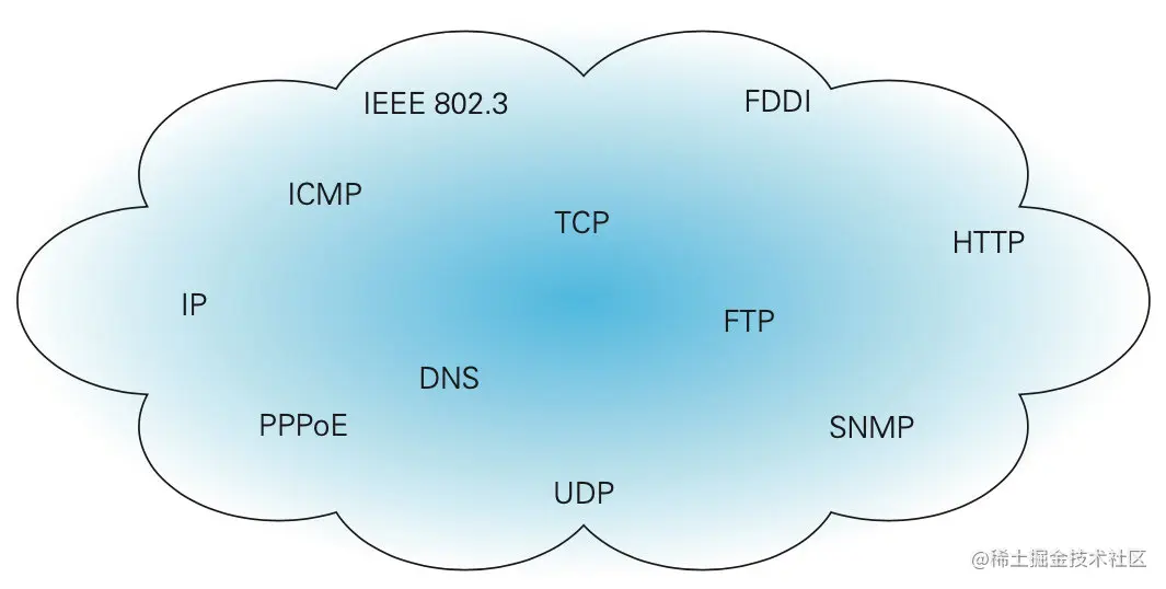 画外音: TCP/IP 协议群如下, IP 不是 IP 地址,是 Internet Protocol 的简称