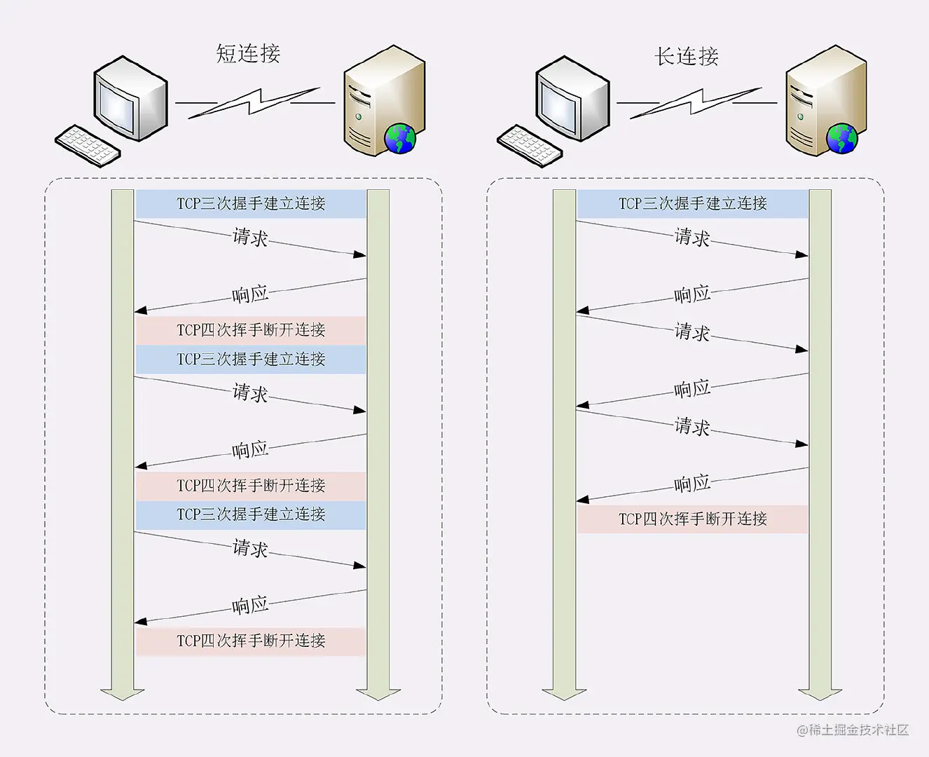 HTTP 0.9,1.0 时期,发送完 HTTP 报文后, 连接立马关闭,这种连接被称为短链接