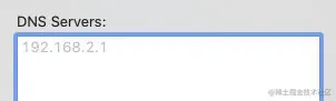 2、 请求本地地址配置的 DNS resolver(非权威域名服务器),一般由用户的 Internet 服务提供商 (ISP) 进行管理,例如有线 Internet 服务提供商、DSL 宽带提供商或公司网,MAC 的同学可以打开网络配置中的 DNS Servers 来看下默认 ISP 提供的域名服务器(如果想用其他的非权威域名服务器,填入即可,这样就会覆盖 ISP 提供的默认地址)