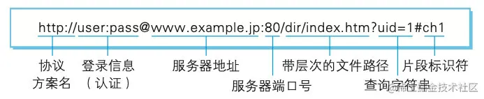 query:查询字符串,可选,用于给动态网页或接口传递参数,可有多个参数,用“&”符号隔开,每个参数的名和值用“=”符号隔开。