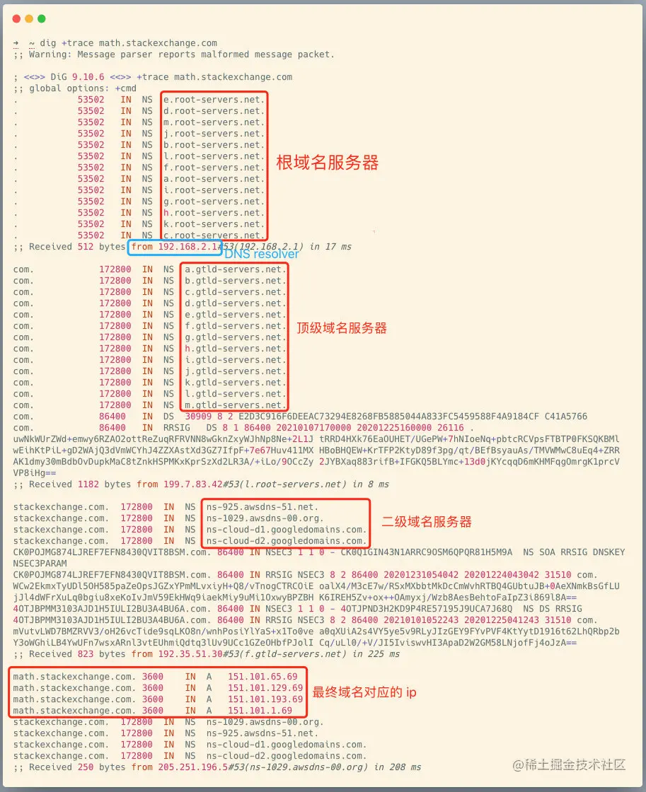 我们可以用 dig 工具来验证一下上面的请求流程