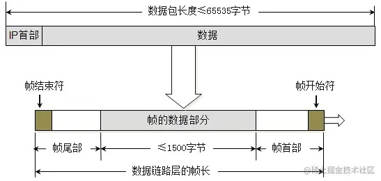 由于帧的数据不能超过1500字节,所以过大的IP数据包,需要分成片(fragments)传输给数据链路层