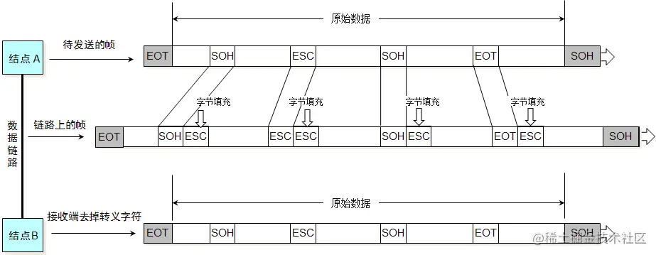 数据部分一旦出现了SOH、EOT,就需要进行转义