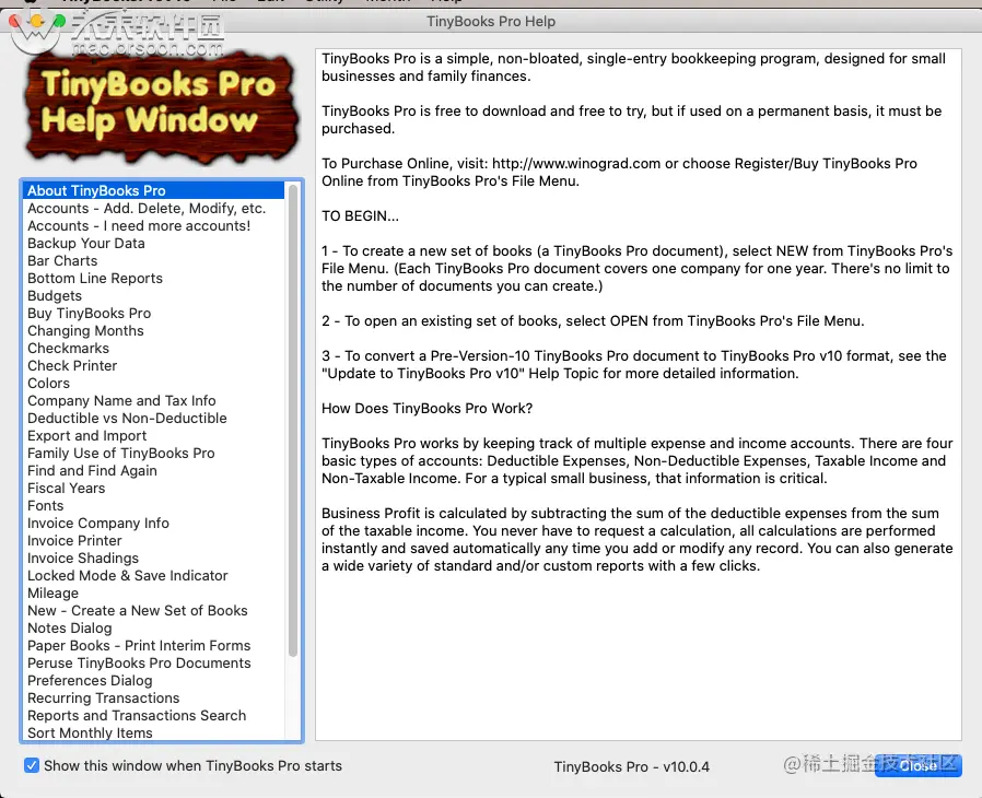 TinyBooks Pro是一个超简单的会计和簿记计划,专为家庭和小型企业和完美的独资经营者。TinyBooks Pro需要一个运行OSX的基于Intel的Macintosh。