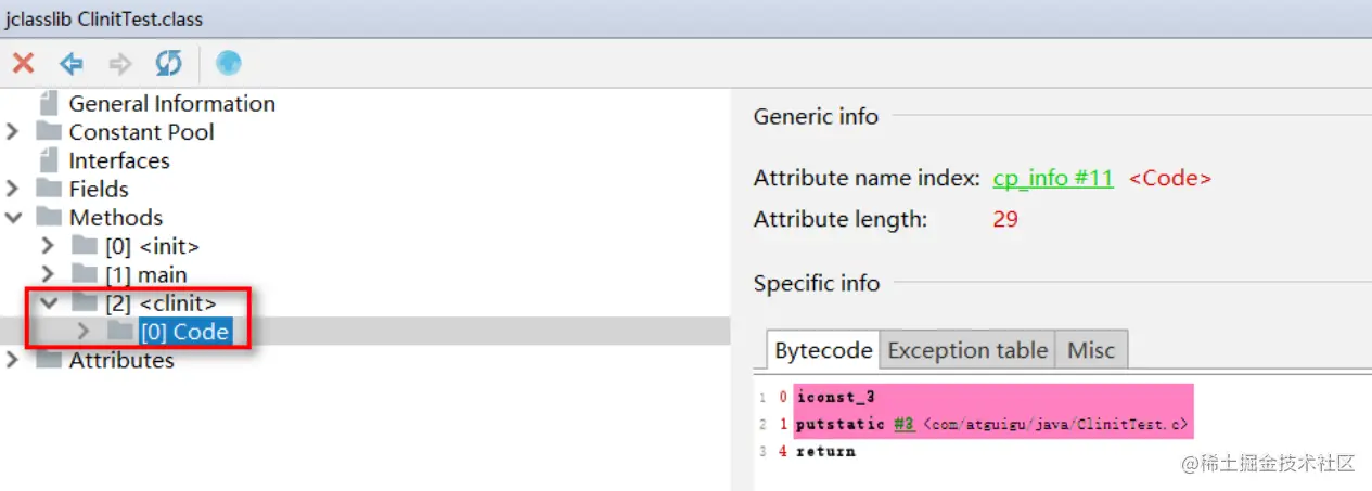 - 此方法不需定义,是javac编译器自动收集类中的所有类变量(静态变量)的赋值动作和静态代码块中的语句合并而来。也就是说,当我们代码中包含static变量的时候,就会有clinit方法(没有static变量则没有)
