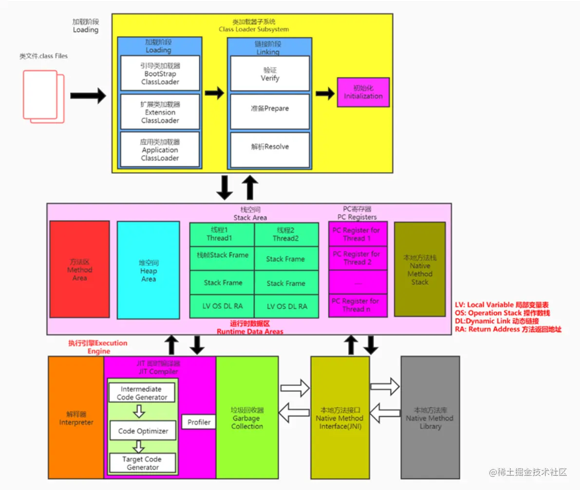 - jvm读取class字节码,执行解释class命令的 执行引擎