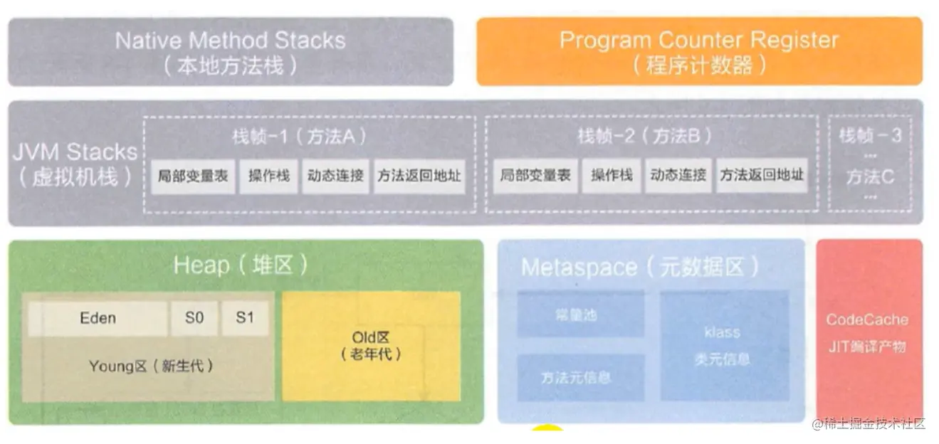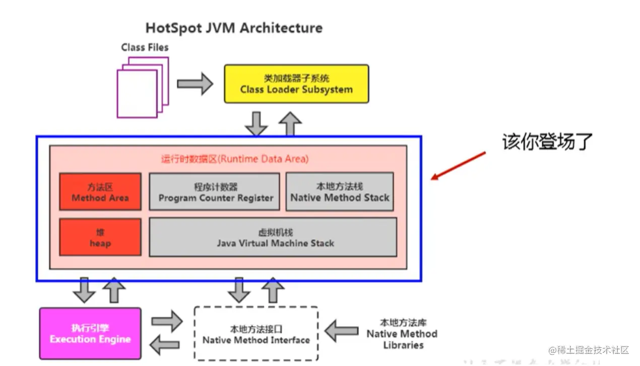 前面的章节中已经将类的加载过程大致过程说清楚了,此时类已经加载到内存中,,后面就是运行时数据区的各个组件的工作了