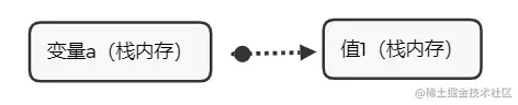 - 基本数据类型:变量名和值都存在栈内存中,是一对一的关系