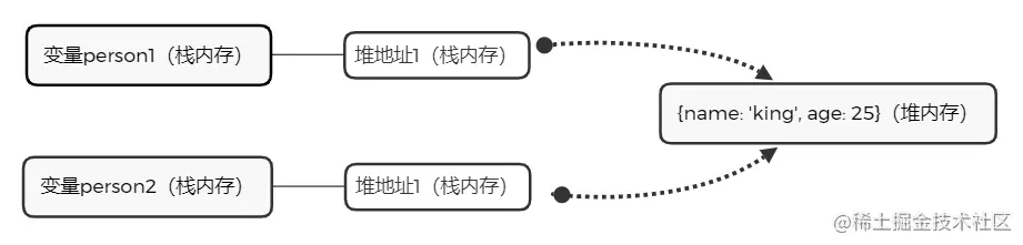 console.log(person1) // { name: 'king', age: 25, hobby: [ '篮球', '读书' ] }