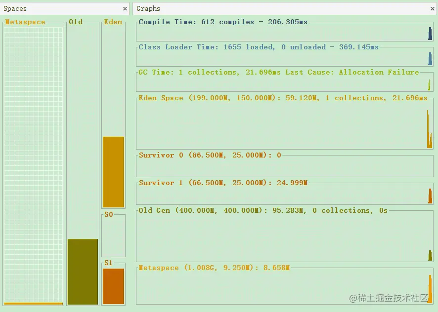 使用 监视工具 ,可以看到 堆内存中内存的分配情况