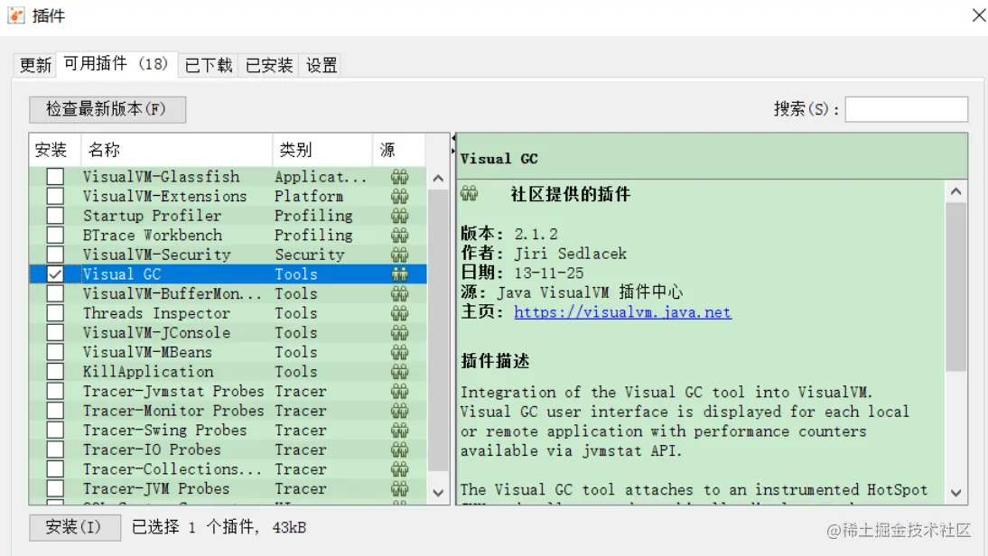 首先安装 Visual GC 插件: