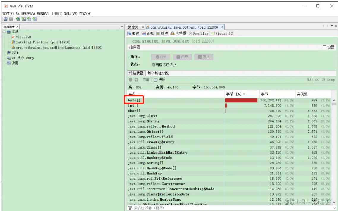 再看一下堆内存情况: 堆内存分配了大量的该对象实例