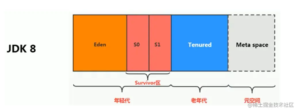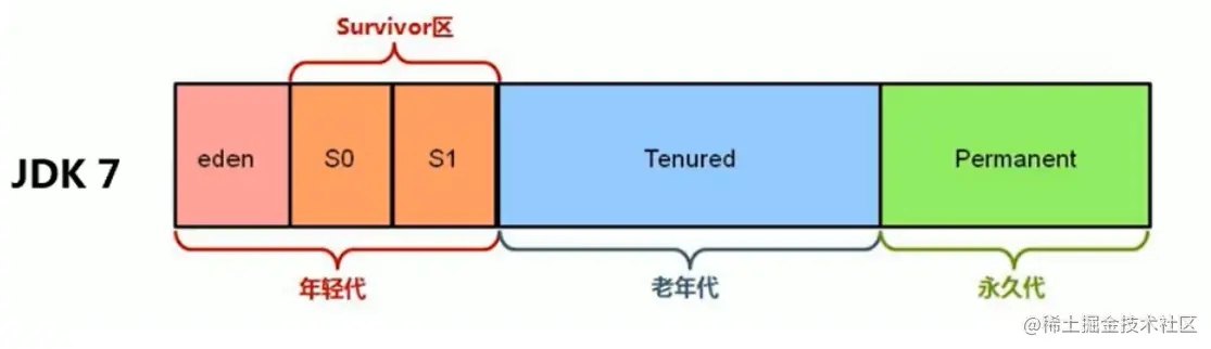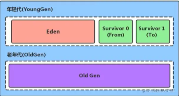 相关名词的其他叫法: 新生区 <–> 新生代 <–> 年轻代 、 养老区 <–> 老年区 <–> 老年代、 永久区 <–> 永久代