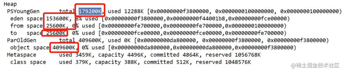查看堆内存的具体划分: 总共10M 的内存全部被 新生区和老年区占用