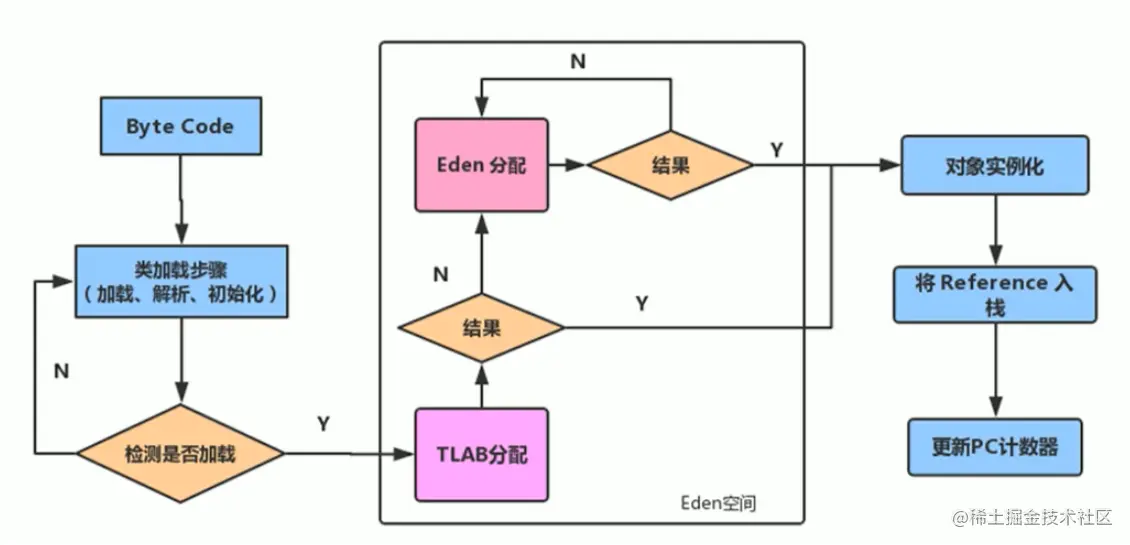 - 分配完成后,继续在调用栈内执行,最后线程结束,栈空间被回收,局部变量对象也被回收。这样就无须进行垃圾回收了。
