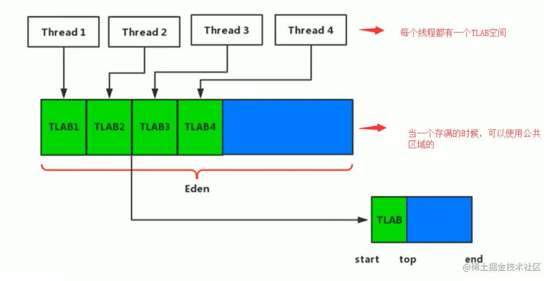 - 当然,也有特殊情况,我们知道普通的对象可能会被分配在TLAB上;