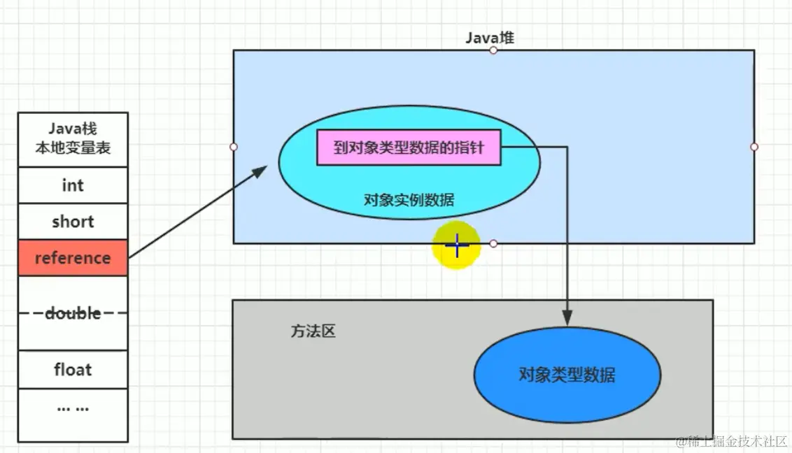 我们在方法内部创建了一个对象,并赋值给一个变量, 对象是在堆中存储, 引用变量存在 方法的局部变量表中, 那么jVM是如何通过栈帧中的对象引用访问到其内部的对象实例呢?