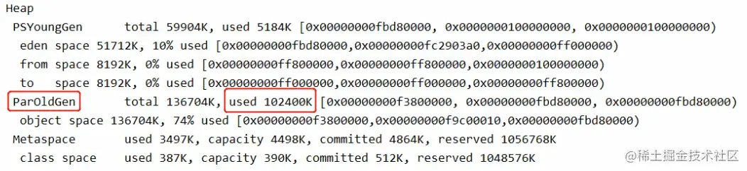 静态变量仍然是放在 老年代中的 used 102400K 没什么问题