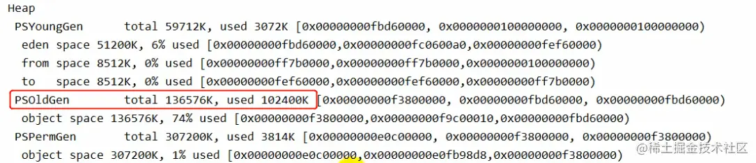 可以看到, 静态变量实例数组放到的是堆中,并因为 新生代放不下,而放到了老年代