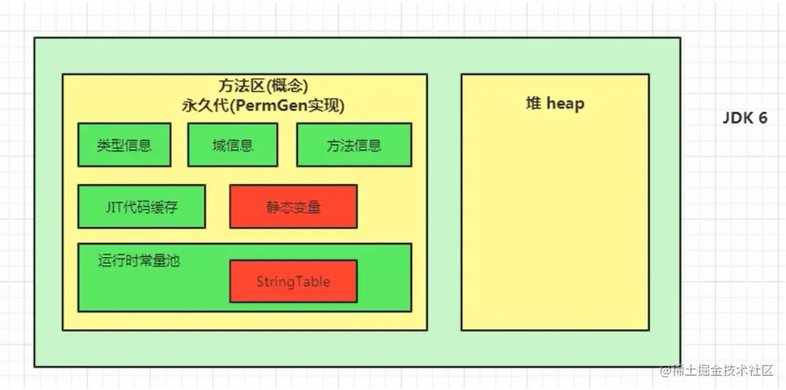 所以,对于HotSpotJVM而言,方法区还有一个别名叫做Non-Heap(非堆),目的就是要和堆分开。