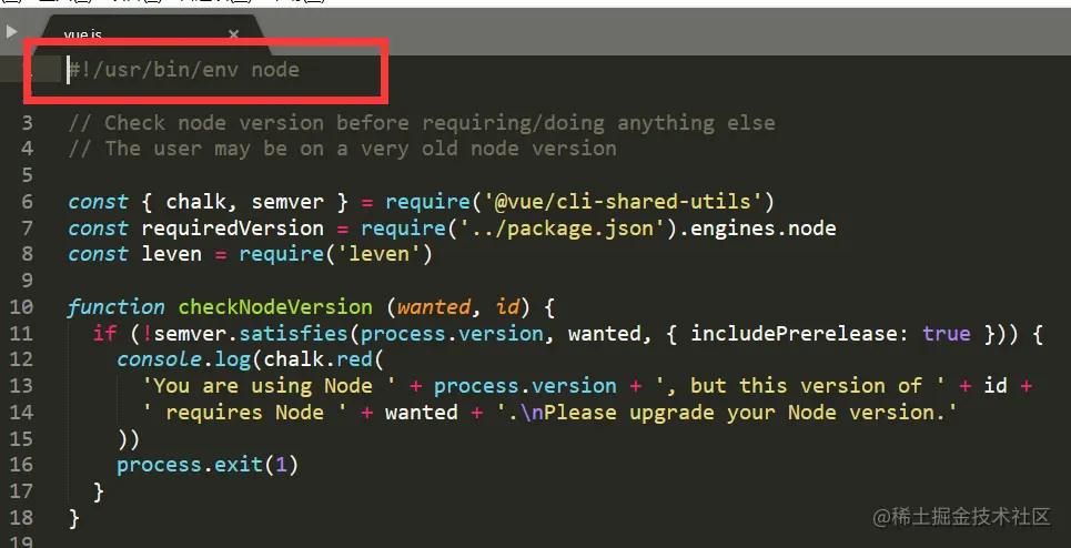 .主要是 #!/usr/bin/env node 这句话,添加了执行该文件的环境变量。 表示当执行当前文件时,会到操作系统环境变量找 node 这个命令,找到以后通过 node 命令执行对应的文件。 直接执行 /usr/bin/env node 命令和直接执行 node 命令是一样的。