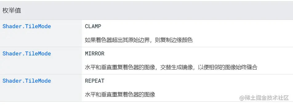 public BitmapShader(Bitmap bitmap,TileMode tileX, TileMode tileY)