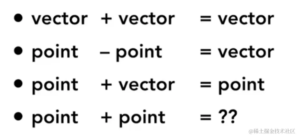 另外需要注意的是,当向量/点与矩阵运算时,通常会使用齐次坐标,也就是从simd_float3变成simd_float4,对于点后面需要补 1,而向量后面补 0,因为点会受到平移的影响,而向量不会:
