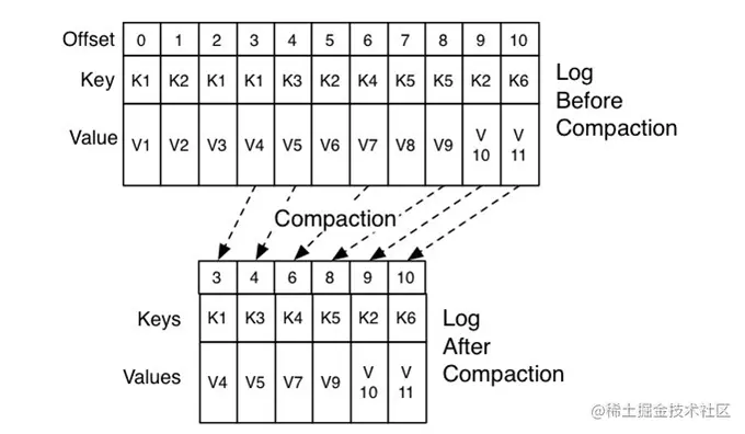 - kafka提供专门的后台线程定期巡检待compcat的主题,查看是否存在满足条件的可删除数据。这个后台线程叫 Log Cleaner。