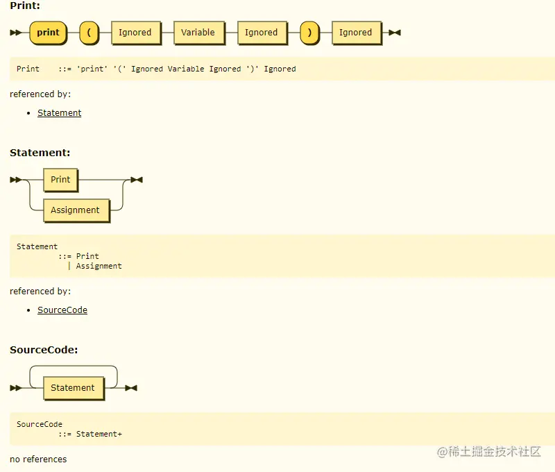 到这里, 我们就完成了 pineapple 语言的 EBNF 定义, 也了解了这门语言的语法.